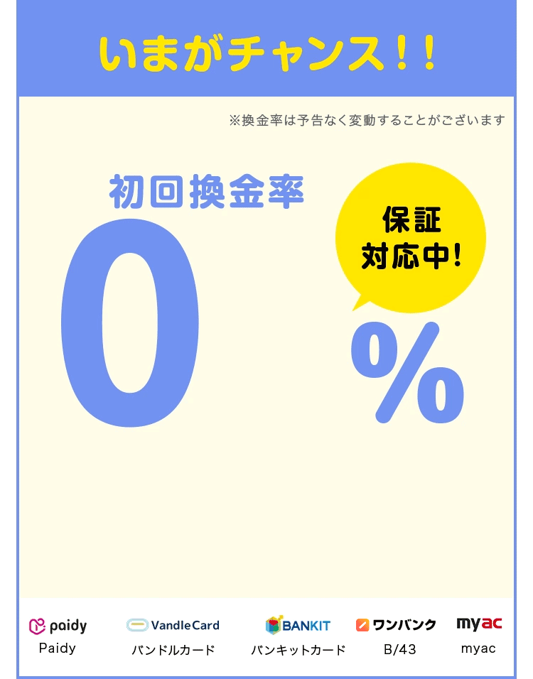 A.Paidyやバンドルカードなど、後払い決済 (ポストペイ) 方式で決済ができるツールの、 利用残高を現金化できる便利なサービスです。 また、クレジットカードを持っていない方でも、スマホ1つあれば数分で発行が可能ですので、 後払いアプリでその日のうちに現金を手に入れることが出来ます。 また、各キャリア対応のプリぺイドカードであれば、キャリア決済でチャージが可能なので、 翌月の携帯料金と一緒に支払いが出来るため非常に便利で手軽です。